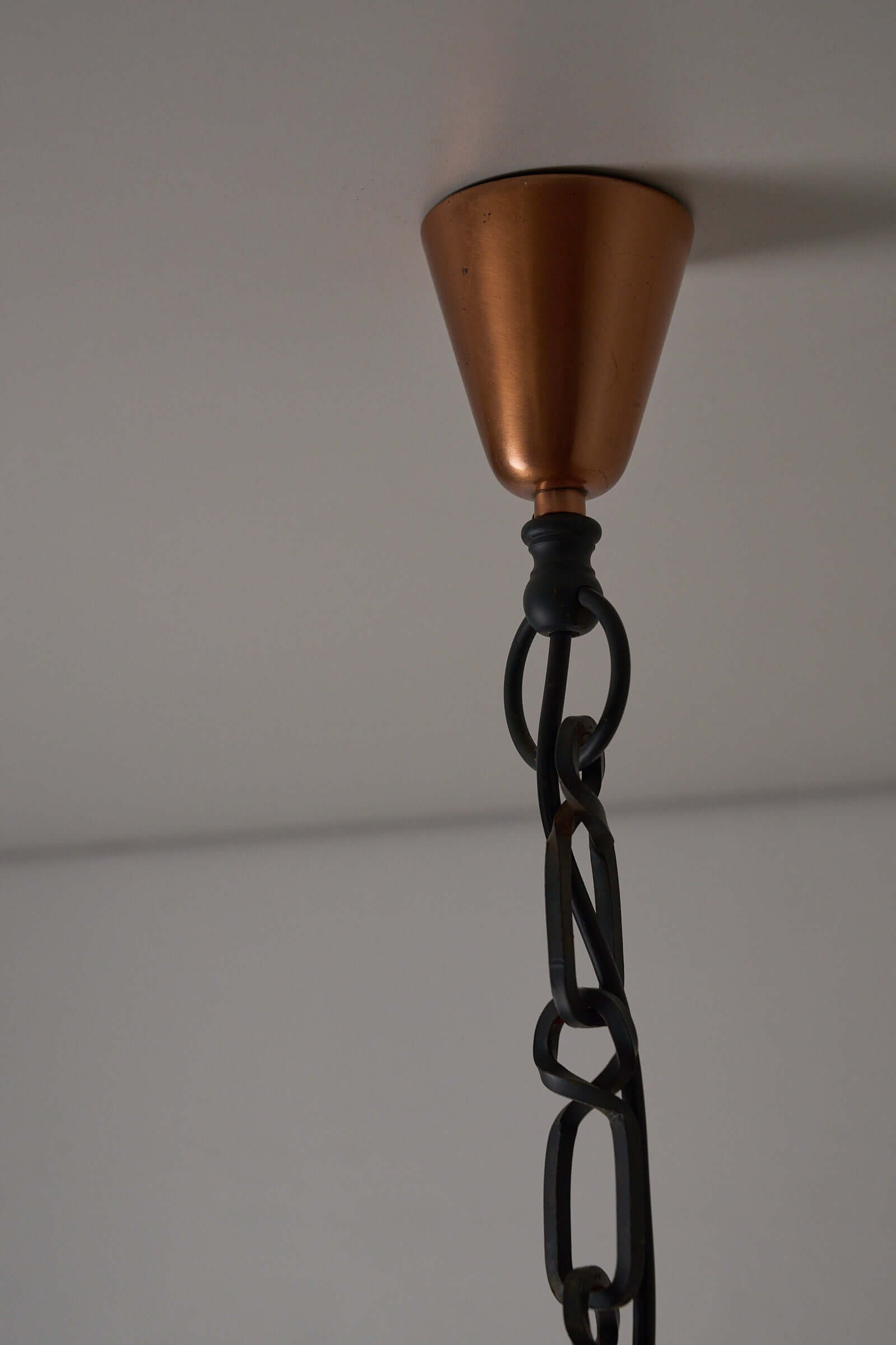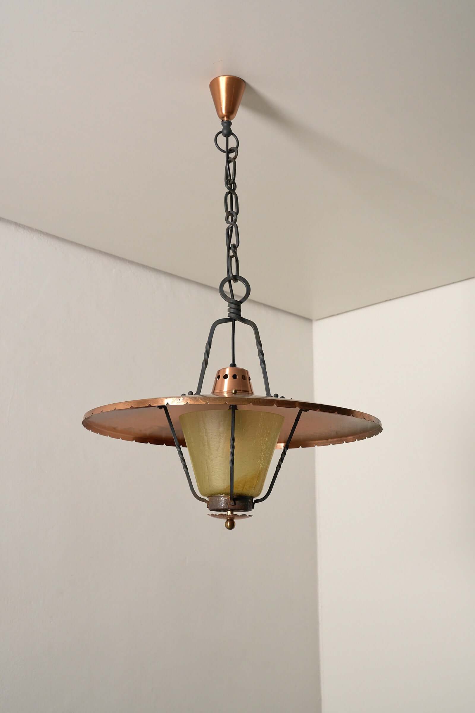 Wrought Iron and Copper Pendant Lamp with Textured Glass Diffuser