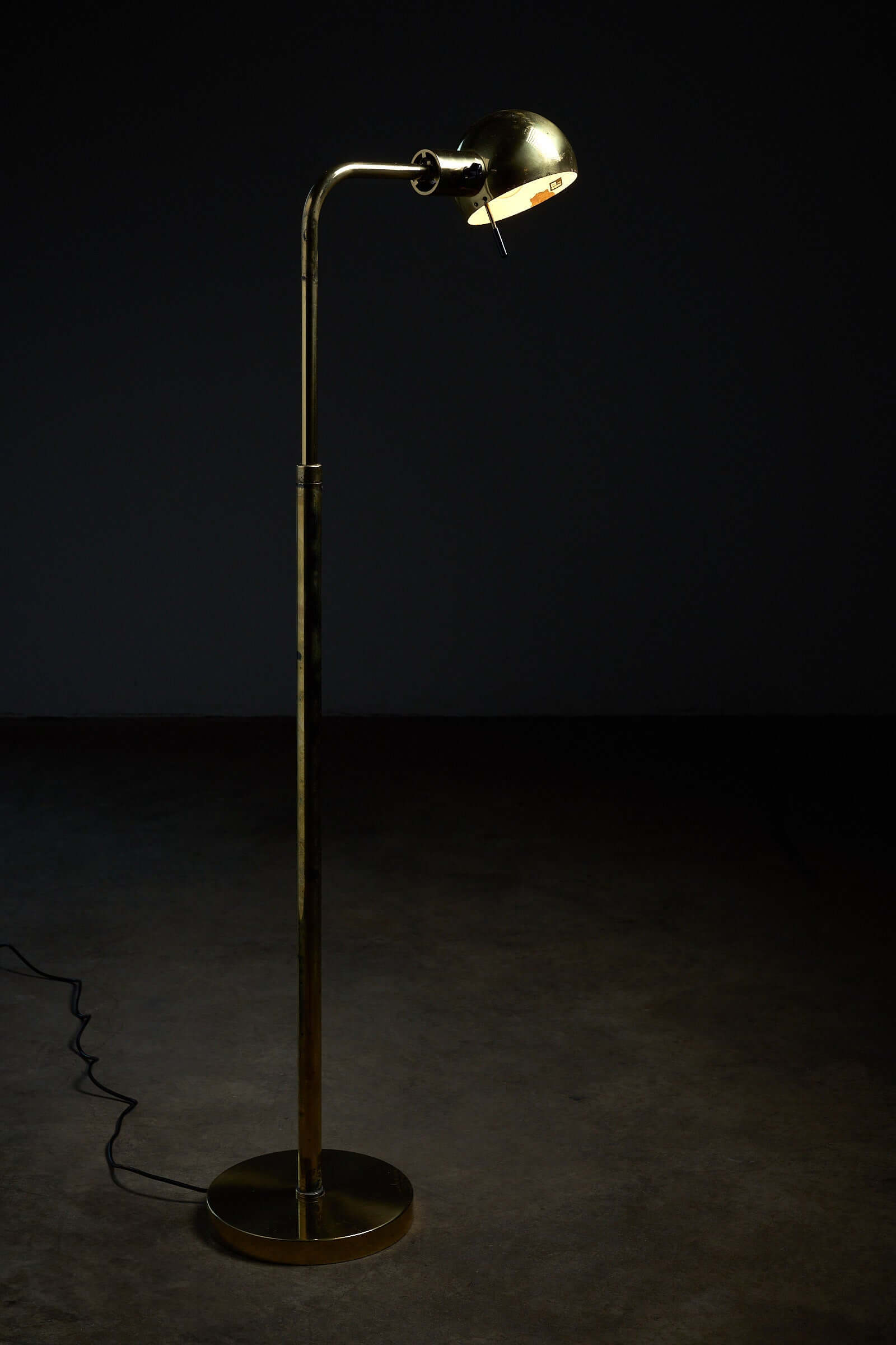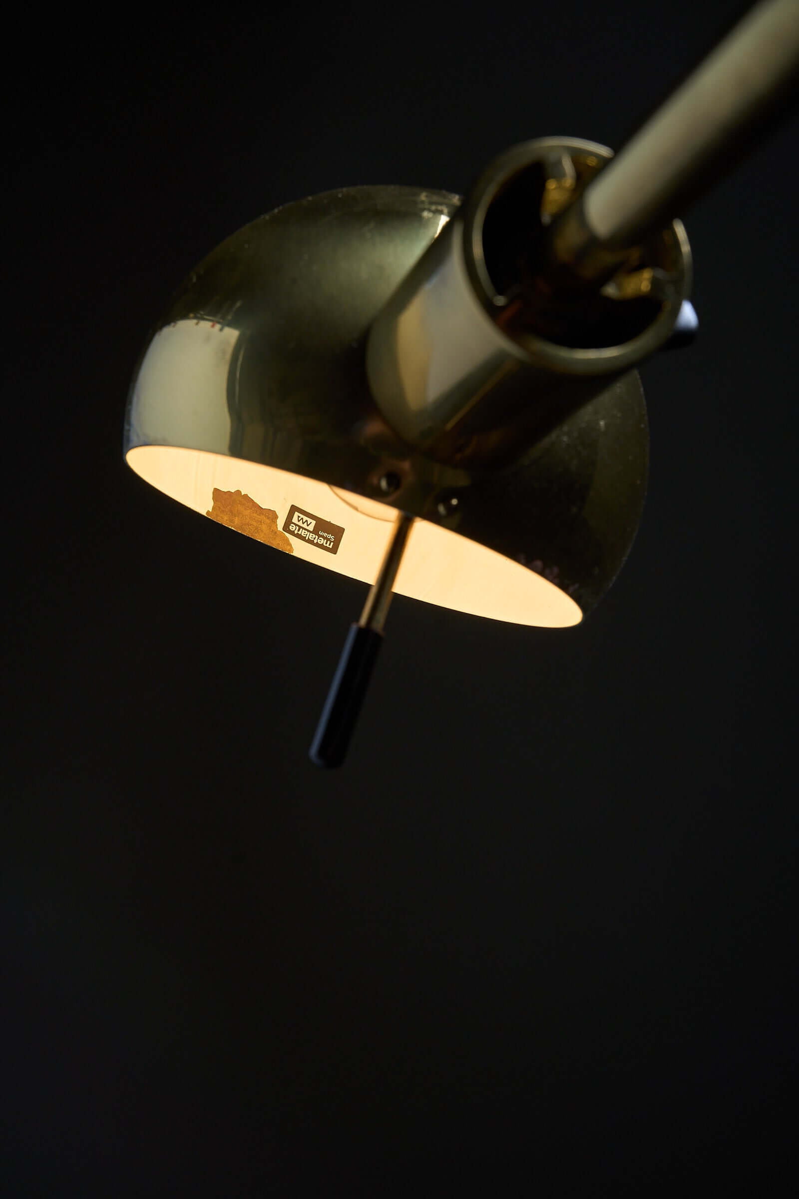 Refined floor lamp by Metalarte, Spain, 1970s. Executed in polished brass with a hemispherical shade, this piece captures the elegance and craftsmanship typical of the brand’s early modernist lighting.