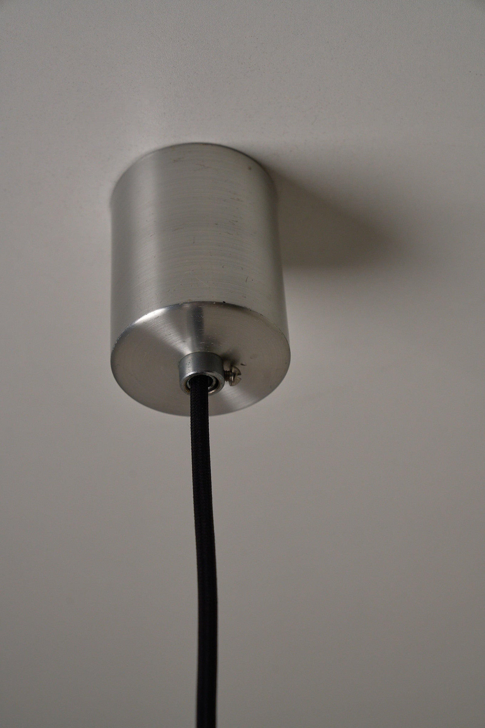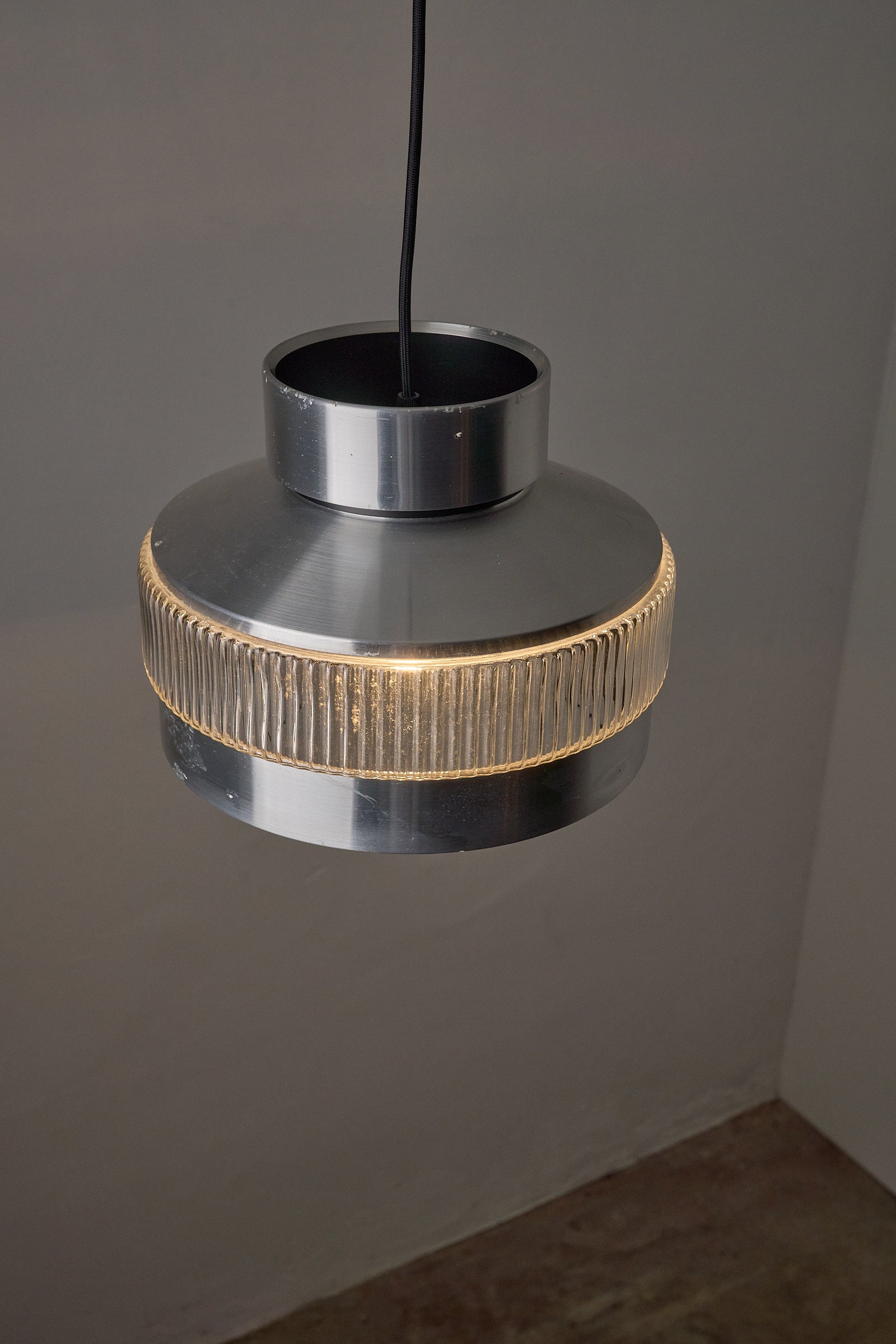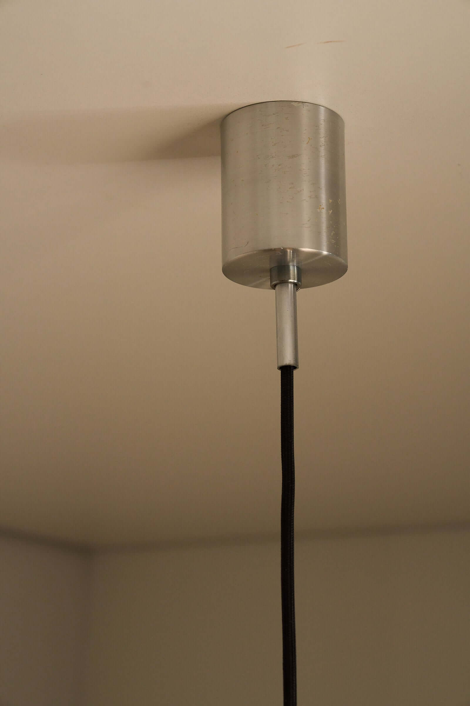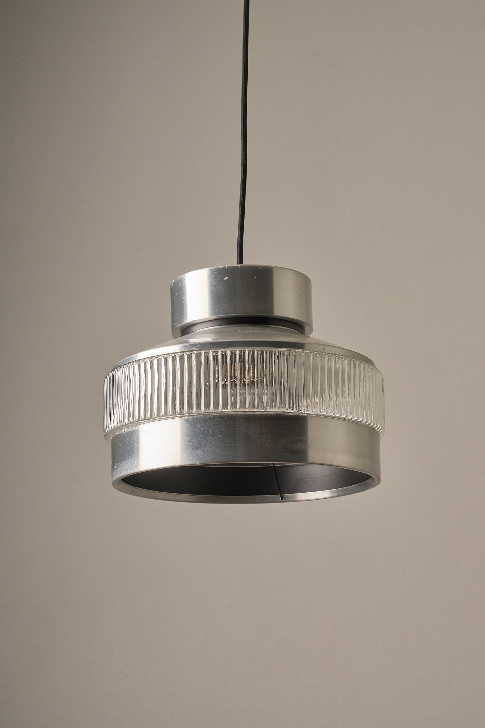 This elegant pendant lamp by Cosack Leuchten features a sleek chrome frame with a textured glass diffuser, offering a timeless modern design. The combination of the brushed chrome surface and the ribbed glass ring enhances the light’s diffusion, creating a warm, inviting glow. This piece exemplifies mid-century modern craftsmanship with its minimalist shape and quality materials. Perfect for adding a touch of sophistication to various interiors.