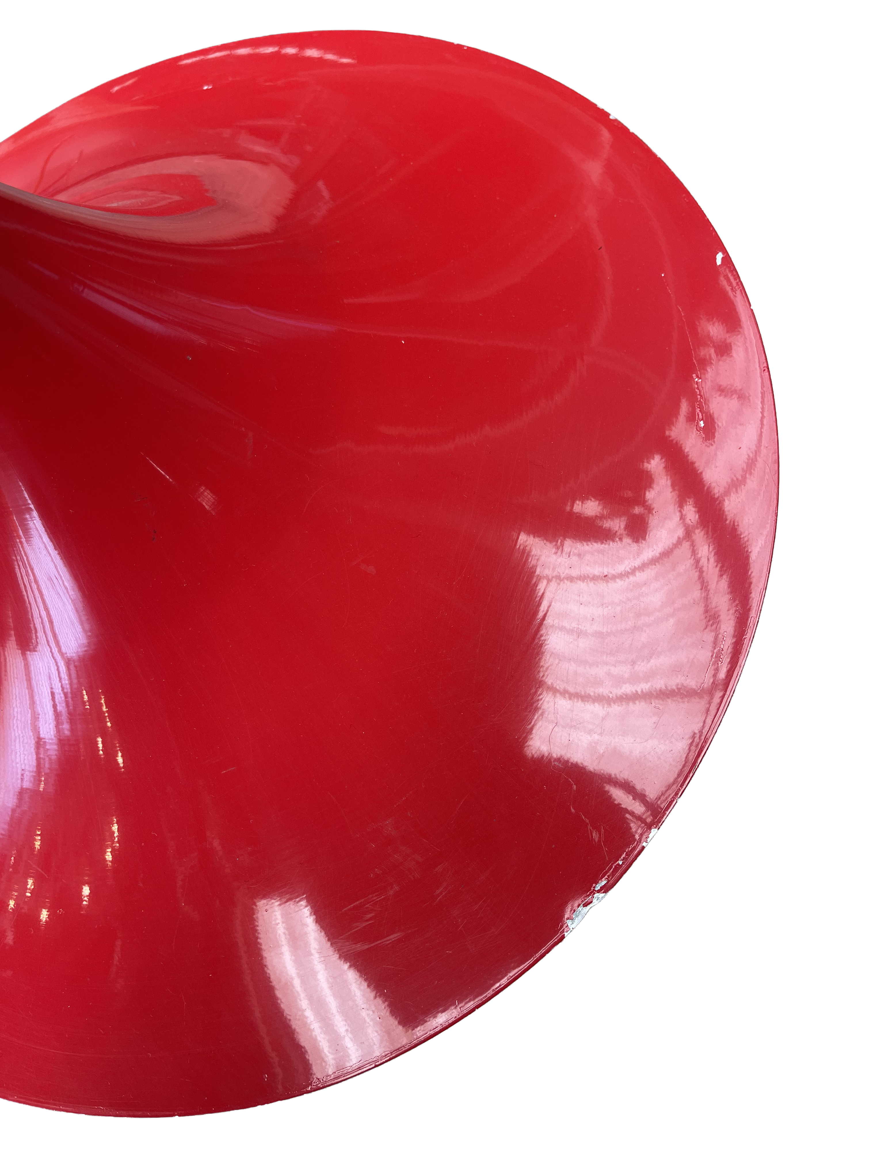 There is visible wear and a dent in the outer red shade. Other colors and sizes might be available upon further request.