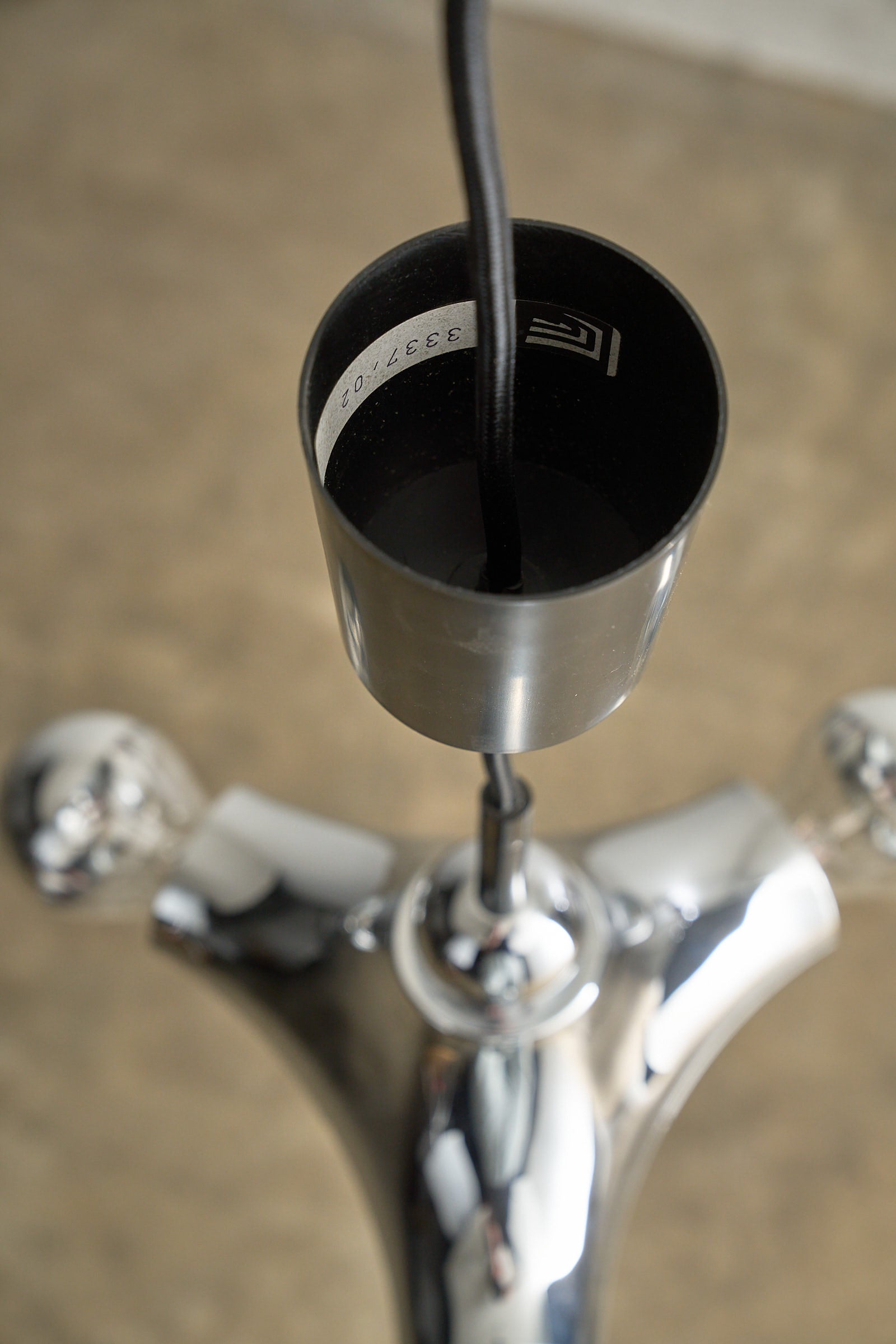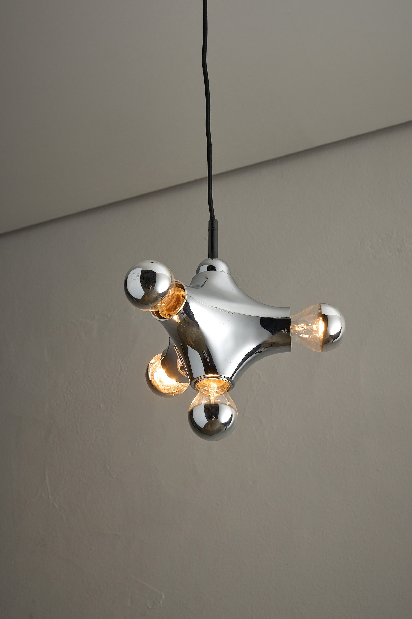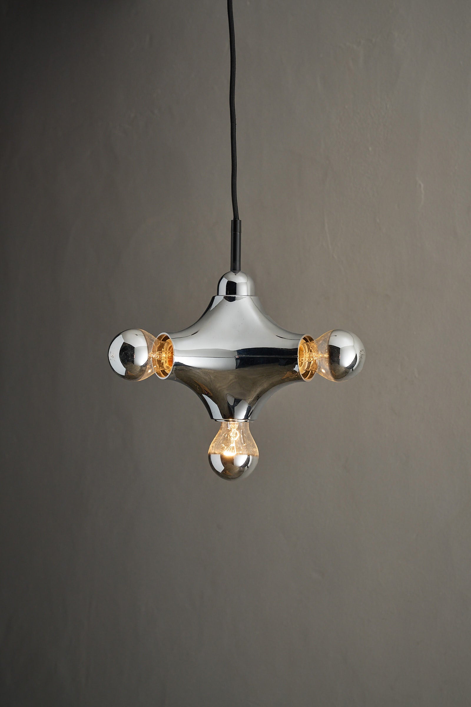 Sculptural chrome pendant lamp manufactured by Cosack Leuchten in Germany. This is a compact version of the company's iconic 'Gemini' line, identified as Model 3337, a line of lighting synonymous with the German manufacturer's Space Age aesthetic of the 1960s and 1970s.