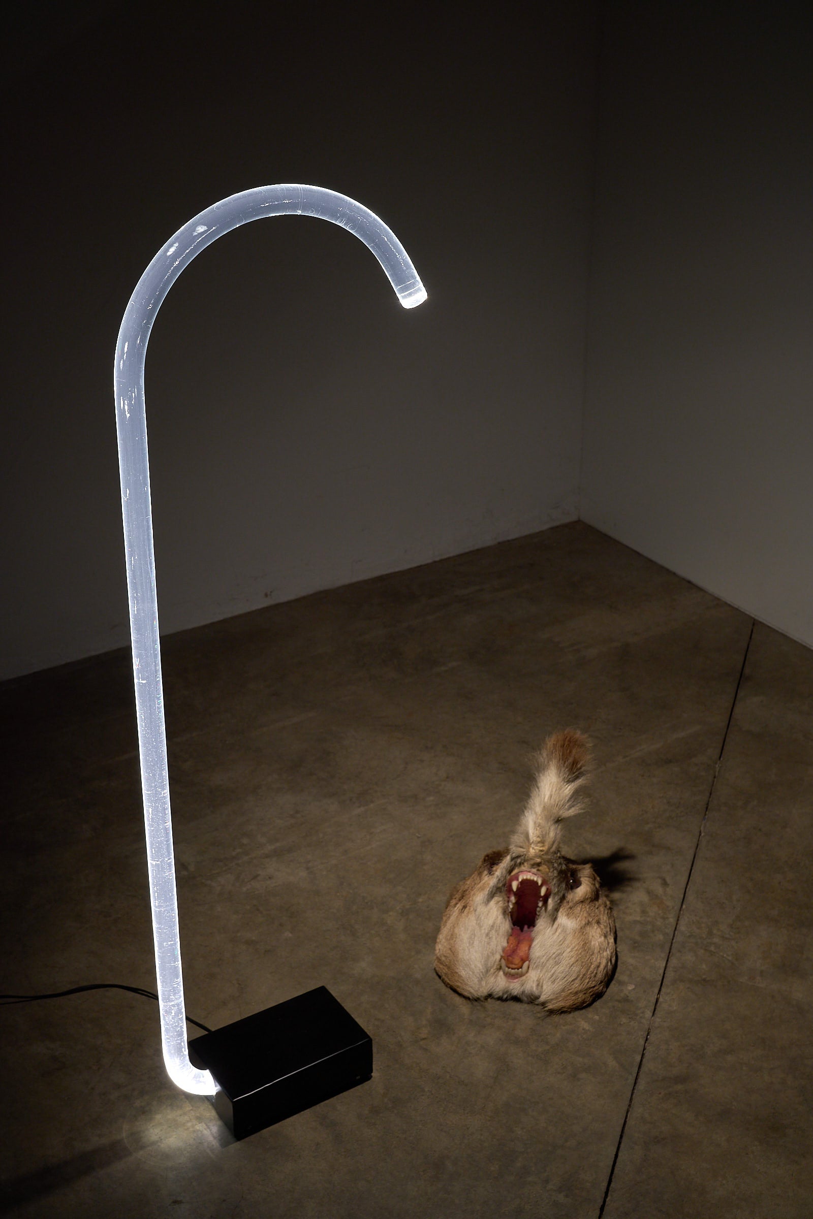 This floor lamp, the “King”, was designed in 1984 by Dutch designer Edy ten Berge and stands as a example of late-20th-century minimalist lighting design. The lamp features a hand-bent, transparent acrylic (perspex) tube that rises vertically and then arches over to direct illumination downward from its tip. The slender tube appears to float, anchored by a weighted base, allowing the light source to become an elegant architectural gesture in space.