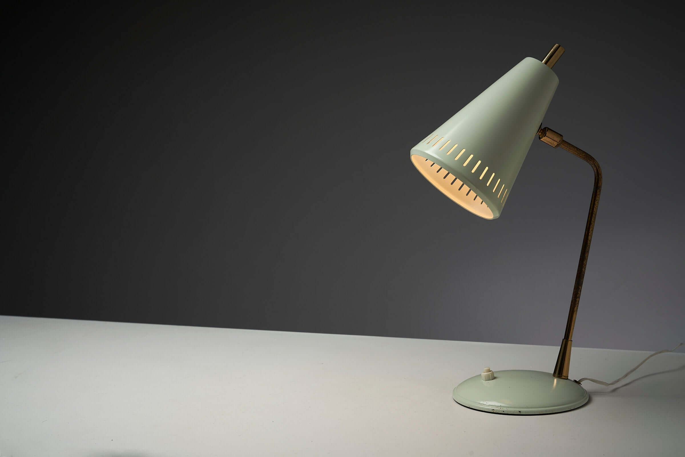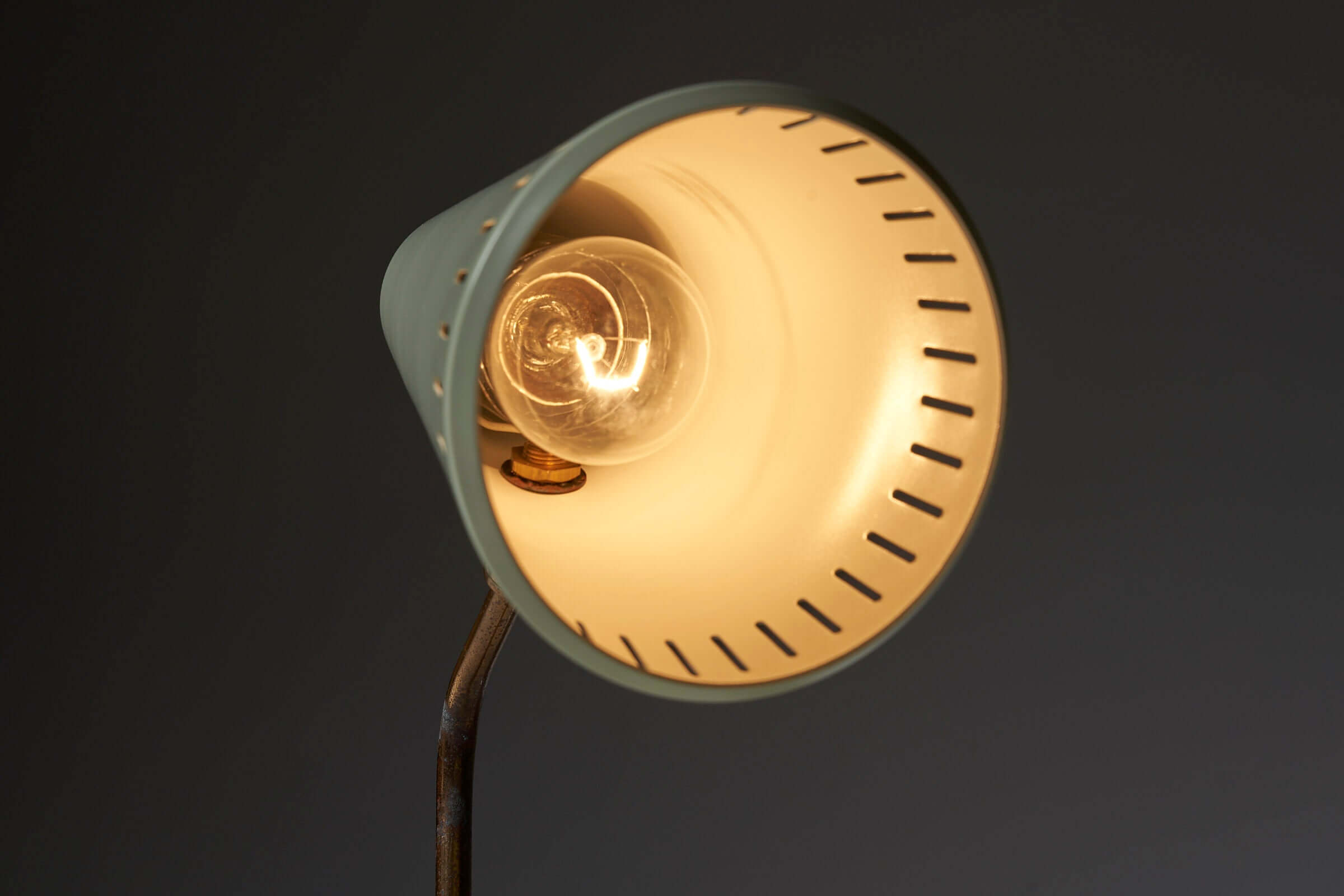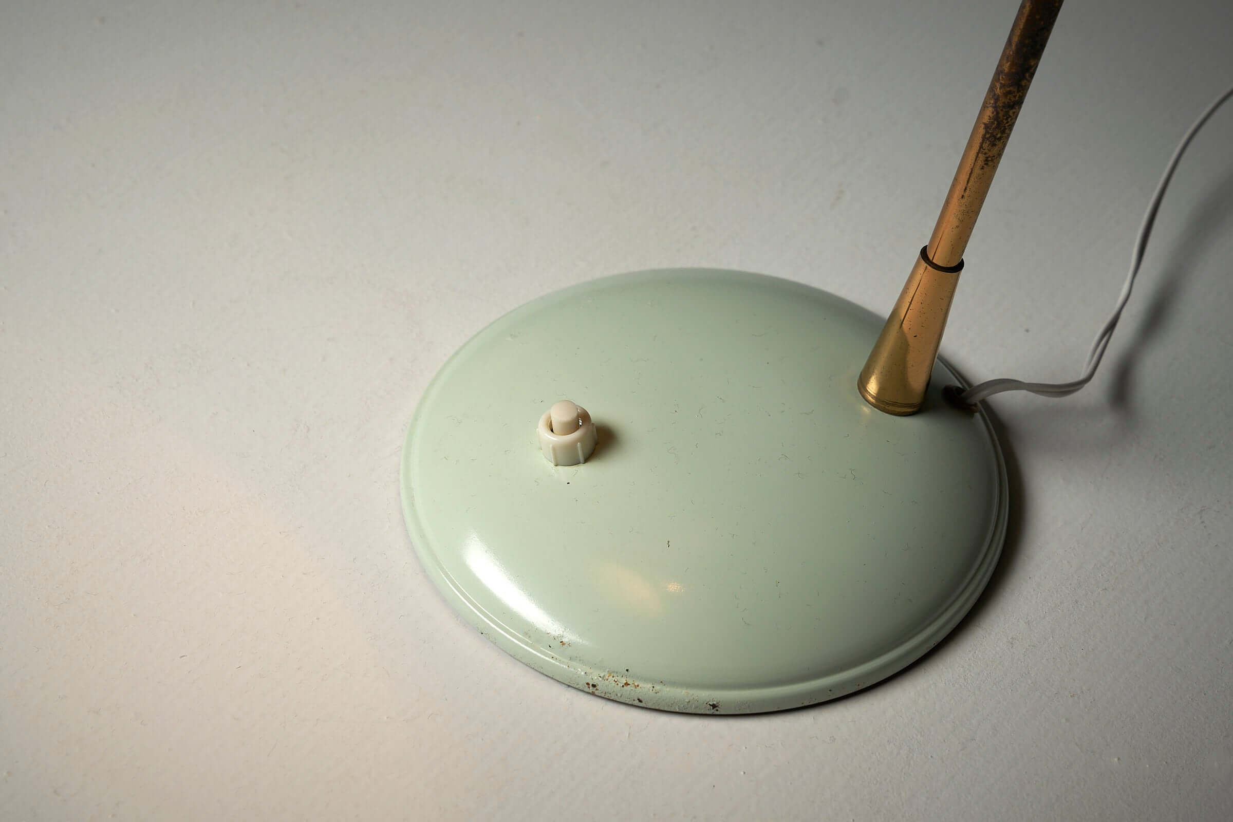 Introduce a touch of luxury to your space with the Adjustable Table Lamp in Patinated Brass & Green Metal. This exquisite table lamp, originating from the 1950s, showcases a captivating design and meticulous craftsmanship.