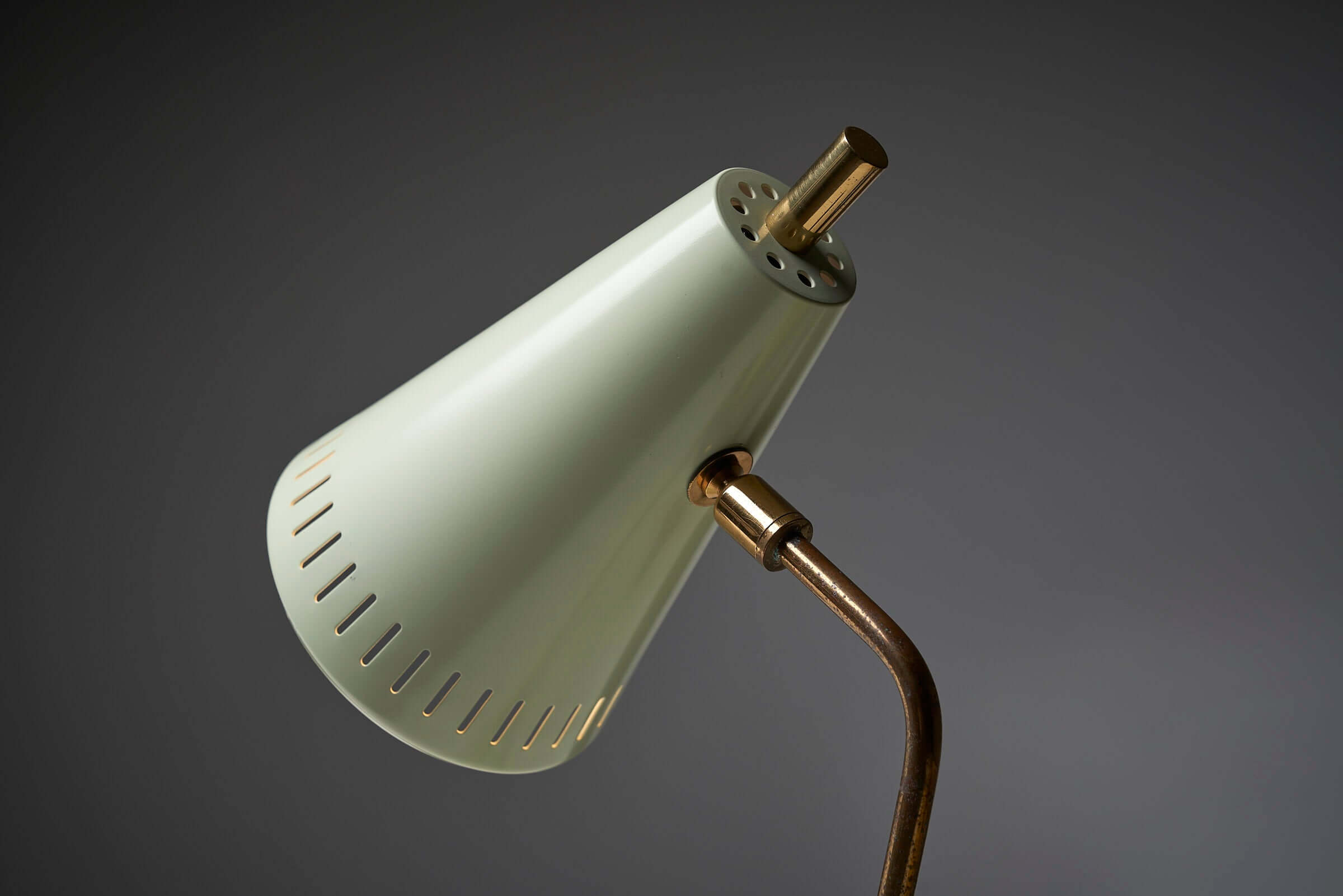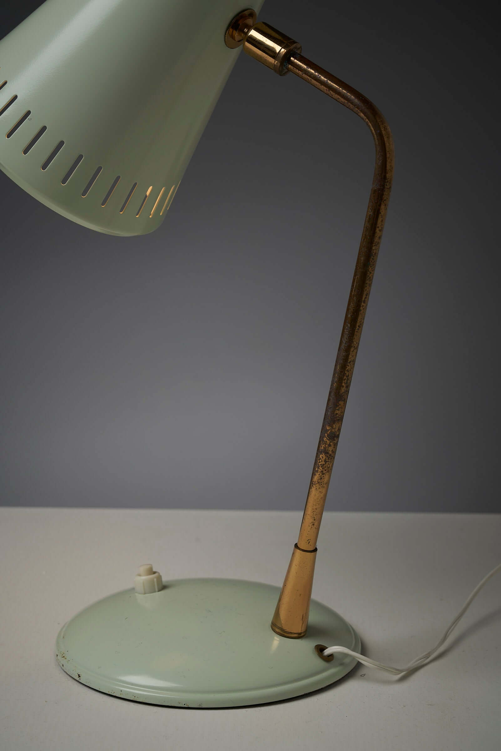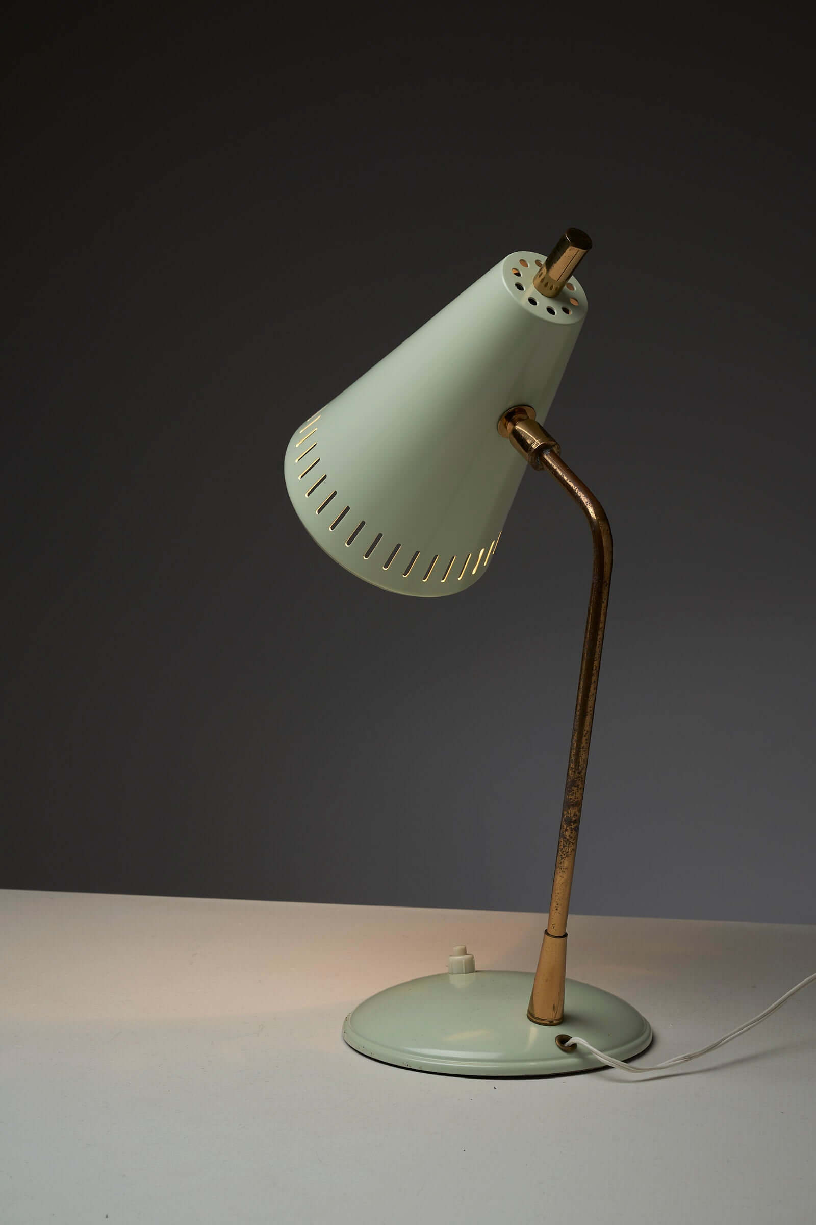 Introduce a touch of luxury to your space with the Adjustable Table Lamp in Patinated Brass & Green Metal. This exquisite table lamp, originating from the 1950s, showcases a captivating design and meticulous craftsmanship.
