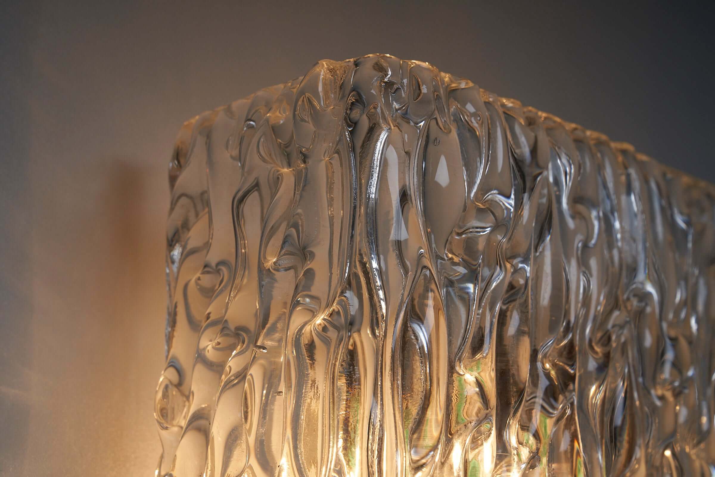 Elevate your space with the Textured Glass Wall Lamp by Kalmar and enjoy the captivating interplay of light and texture it brings to your interior.